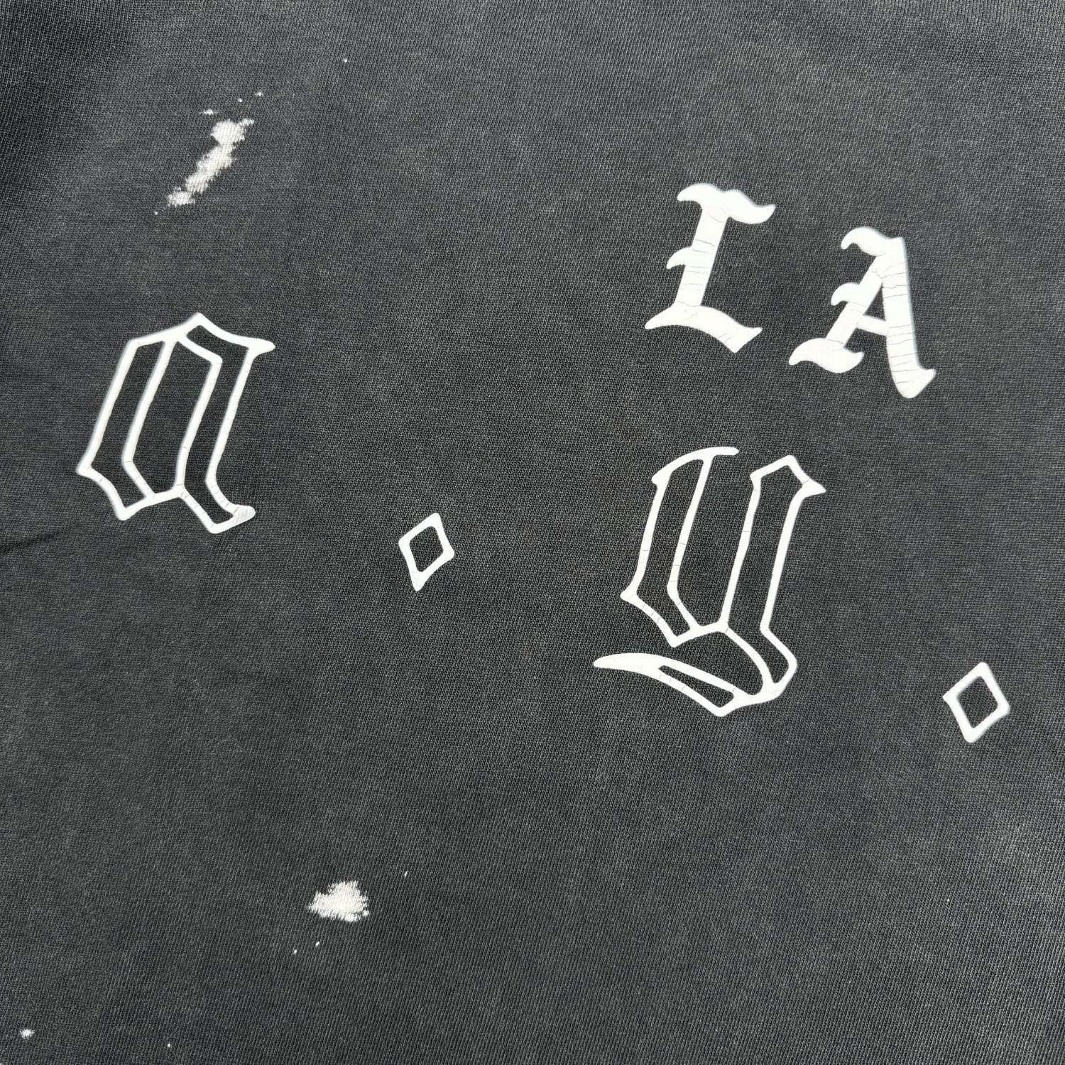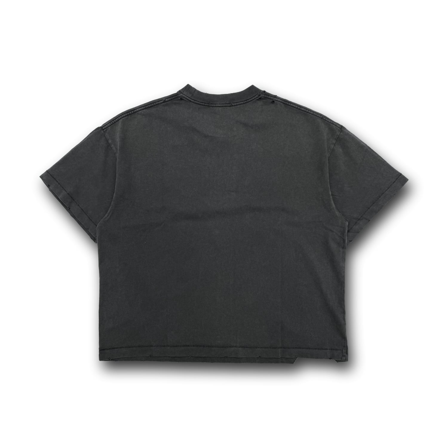 ヴィンテージウォッシュ加工とダメージ加工が施されたTシャツ。