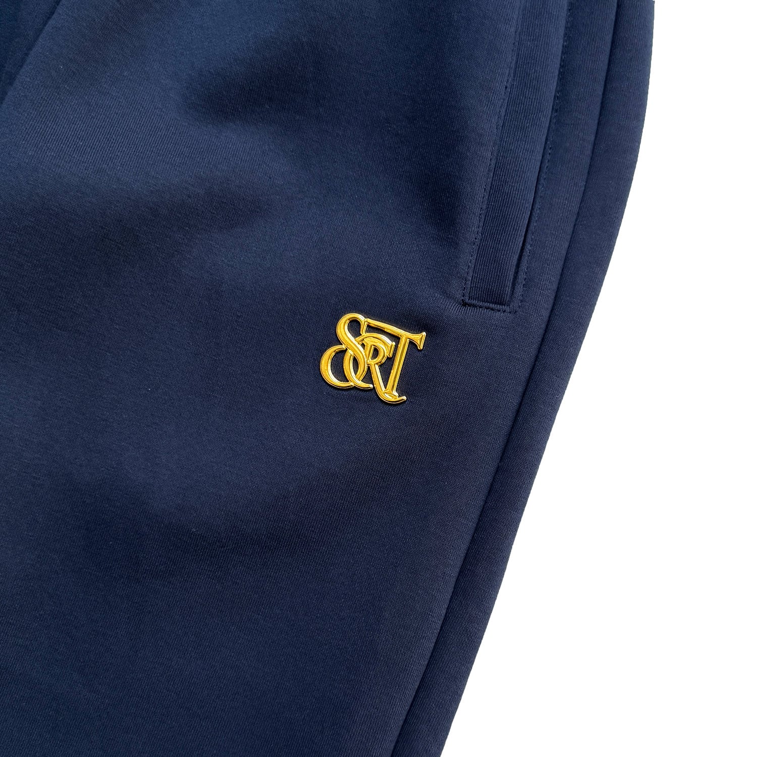 パンツは左ポケット下部分と右ポケットにブランドロゴデザインの金具が使用されております。