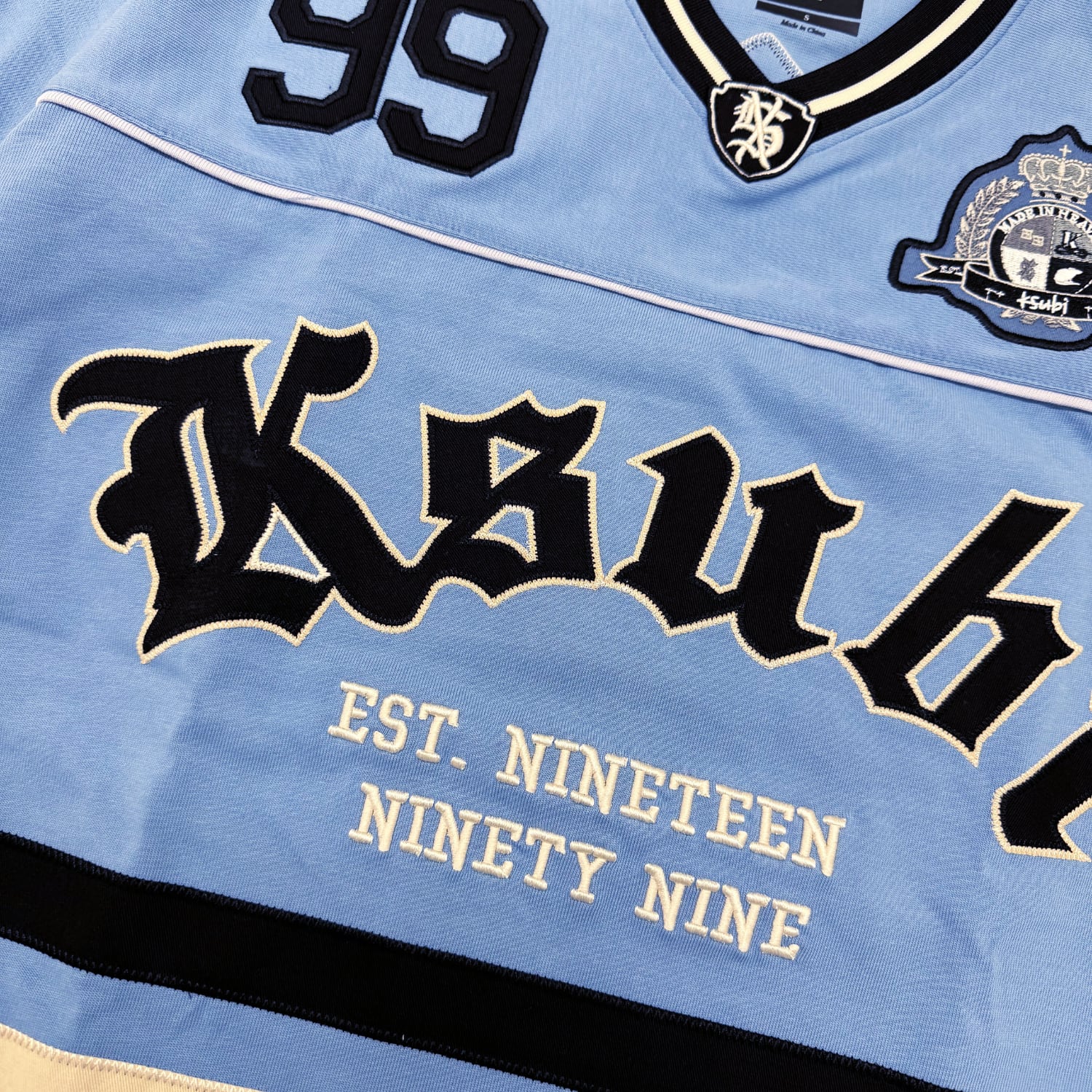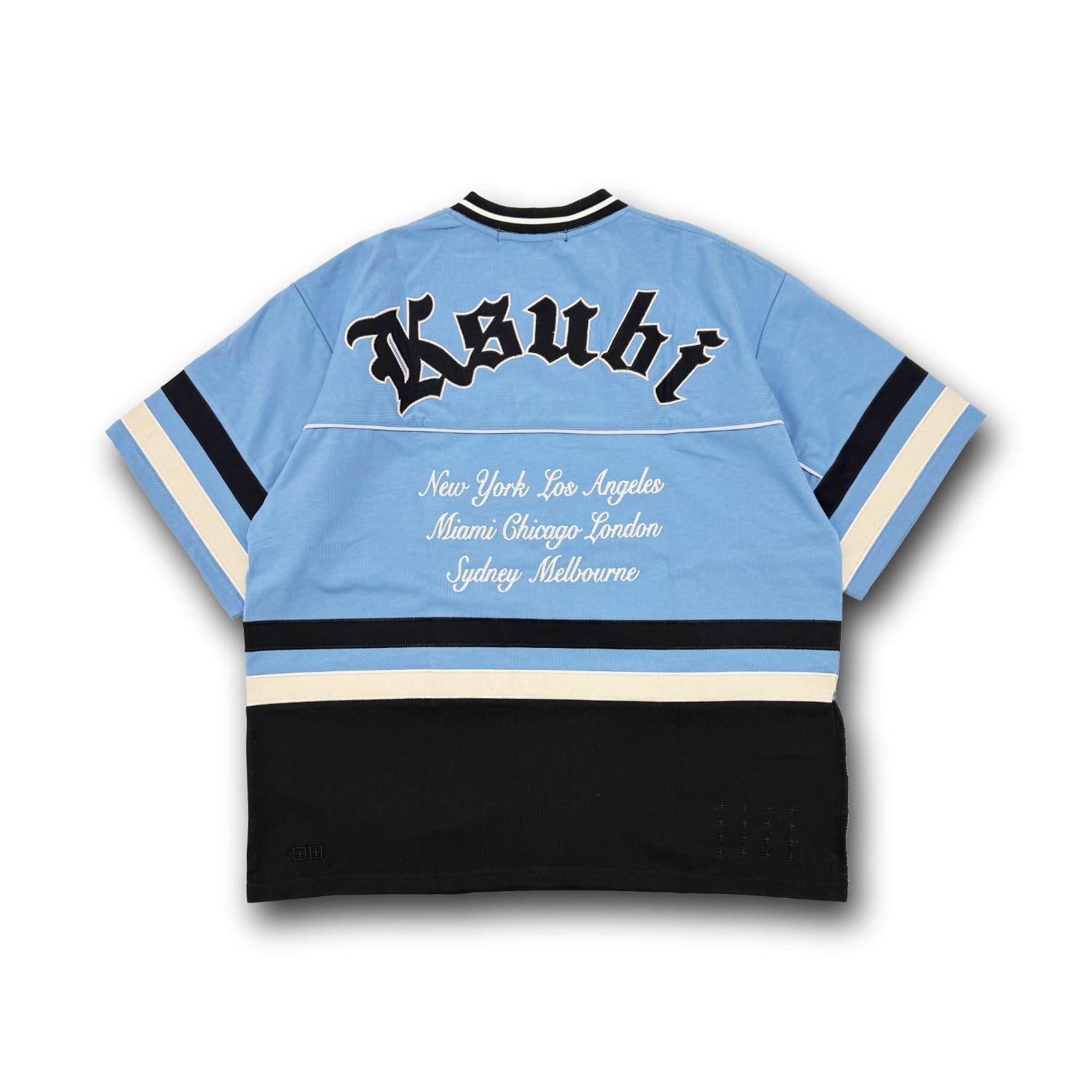 身幅と肩幅が広いボックスシルエットでフロントとバックにデザインの刺繍とパッチワーク加工。