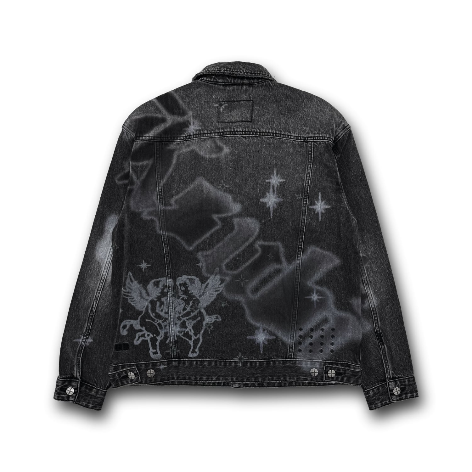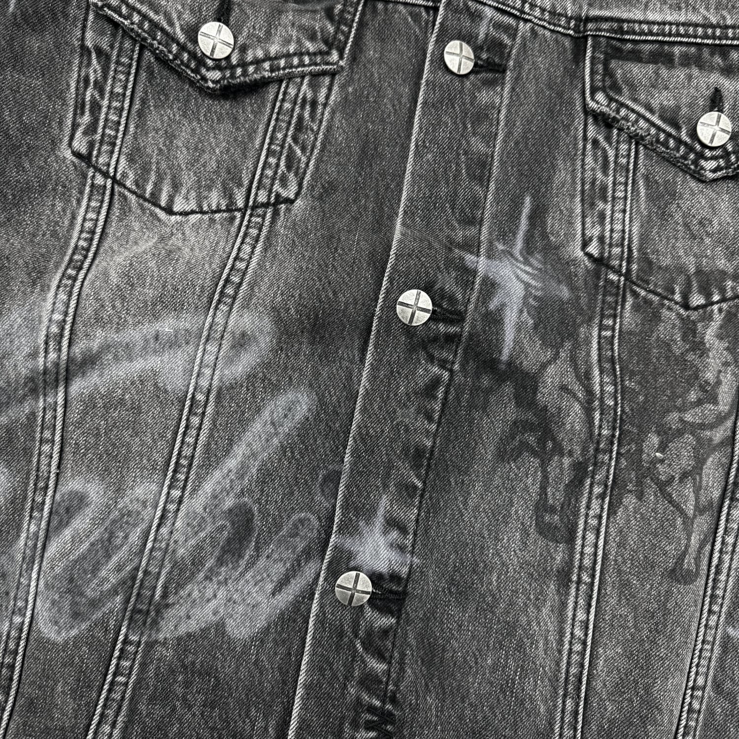 身幅と肩幅の広いボックスシルエットで全面にデザインと細かなダメージ加工。