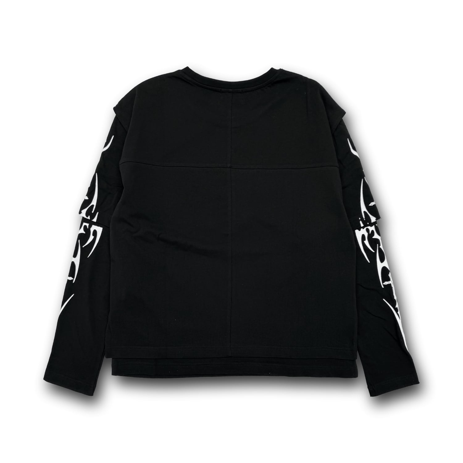 サーマル生地が使用されたレイヤードロングスリーブ。