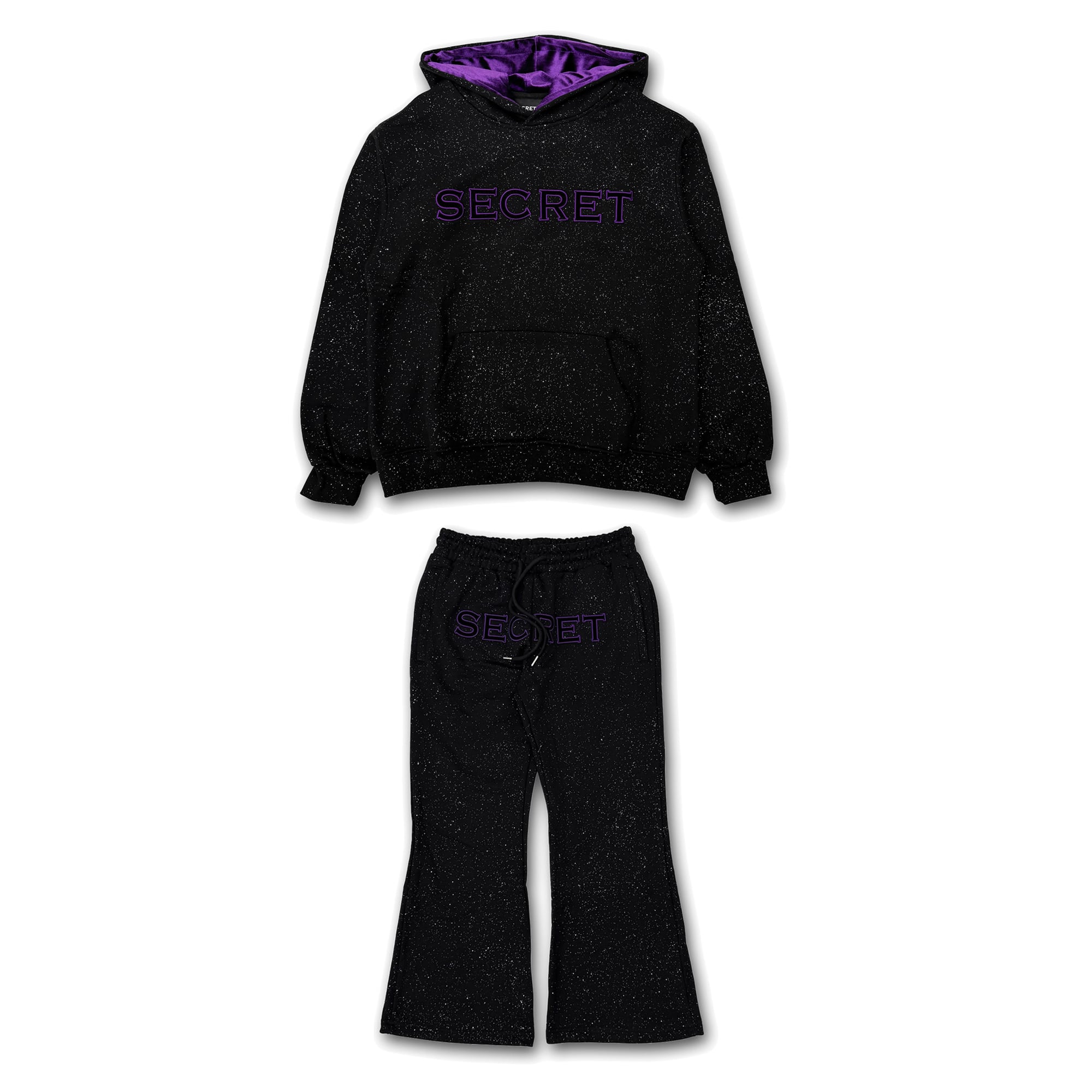 輝きのあるグリッターが散りばめられたスウェットセットアップ。