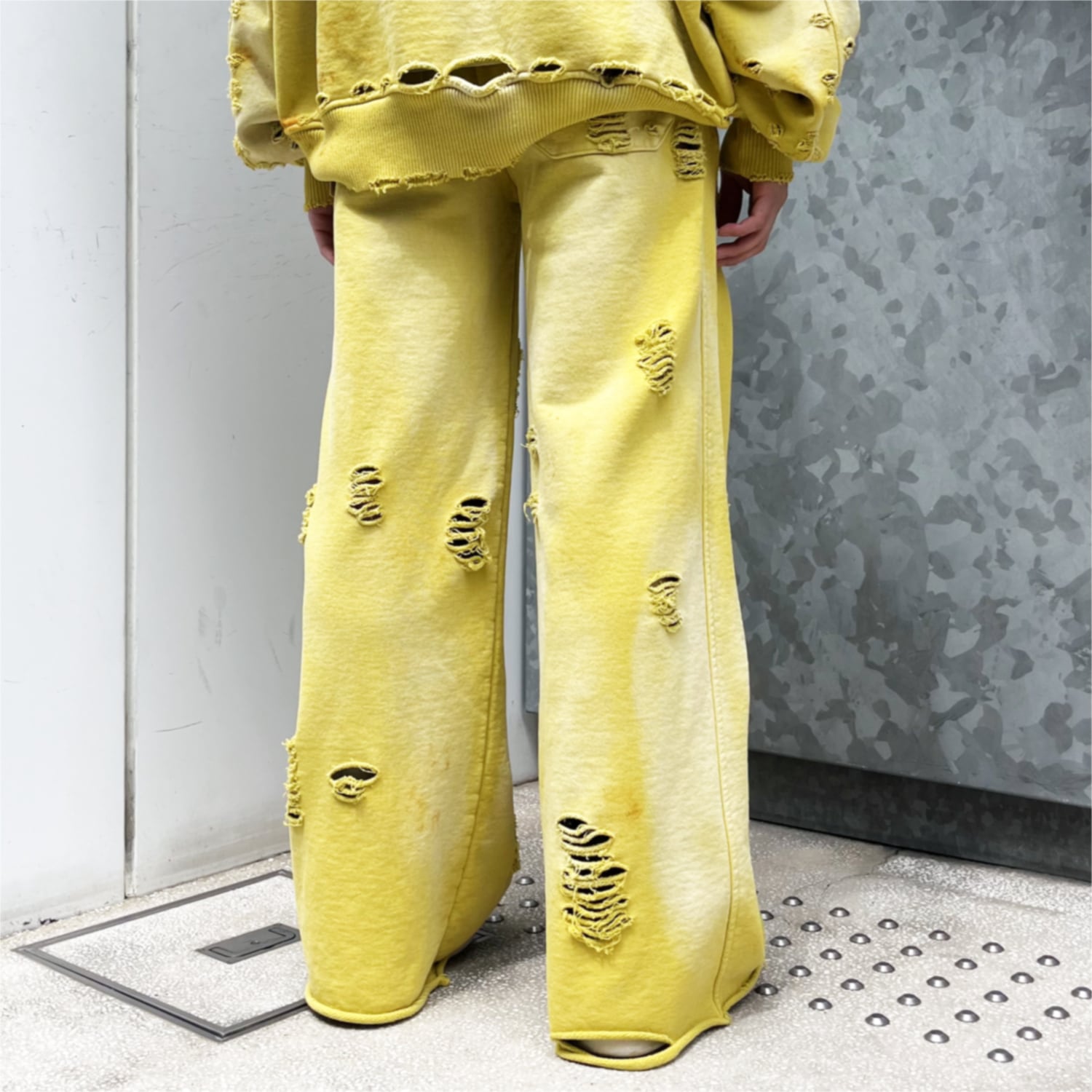 ガーメントダイ加工に加えヴィンテージのエイジング加工が施されたスウェットパンツ。