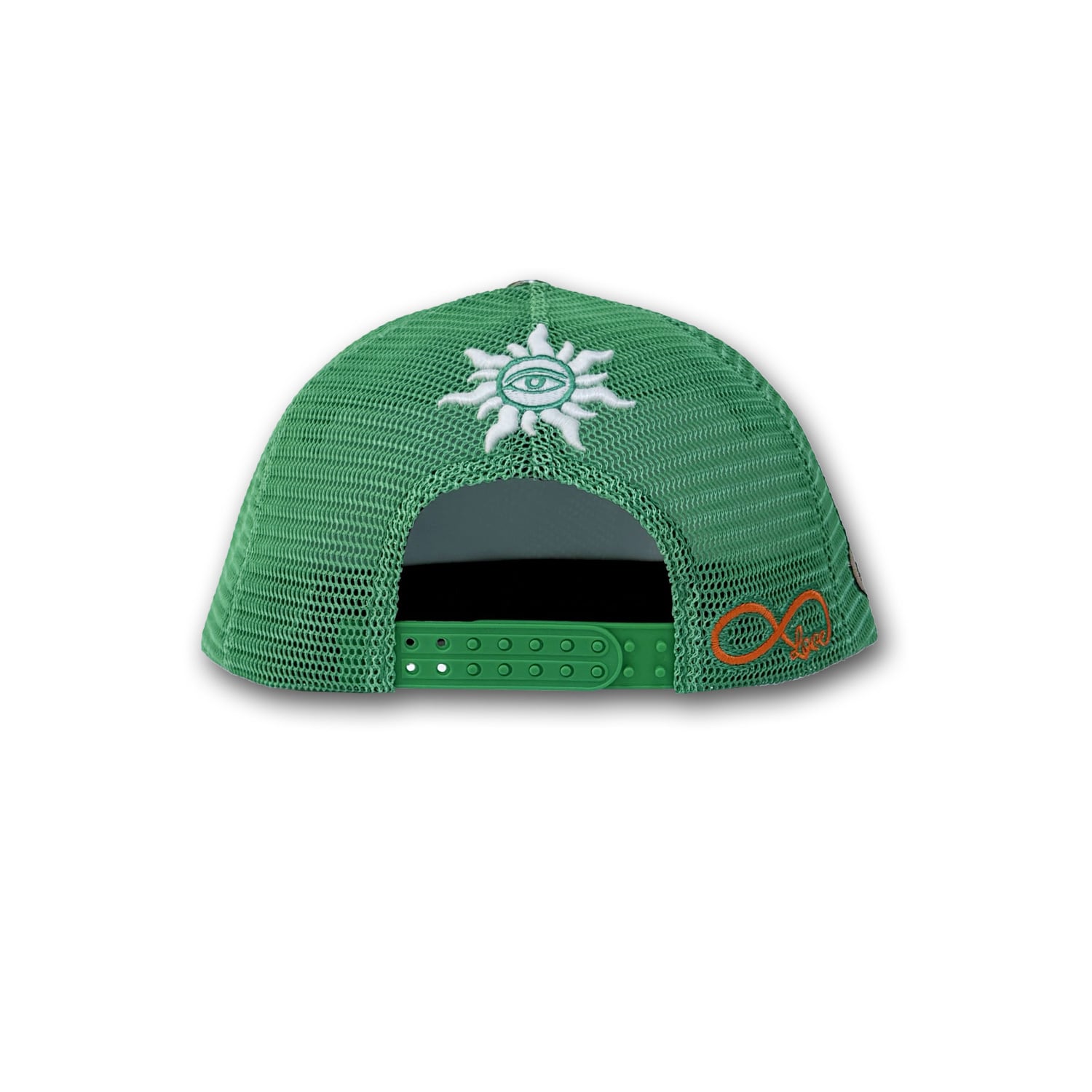 フロントのブランドロゴは立体感のある3D刺繍、つば部分やサイドとバックのメッシュ部分にも刺繍でグラフィックデザインが落とし込まれております。