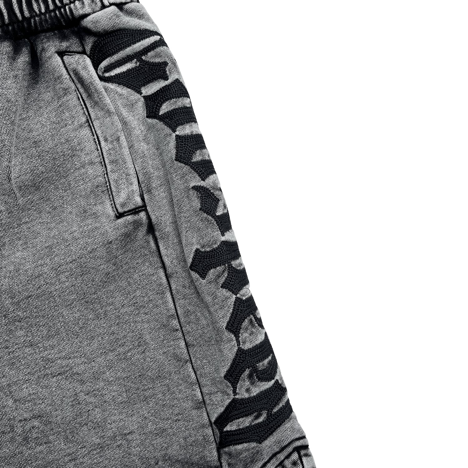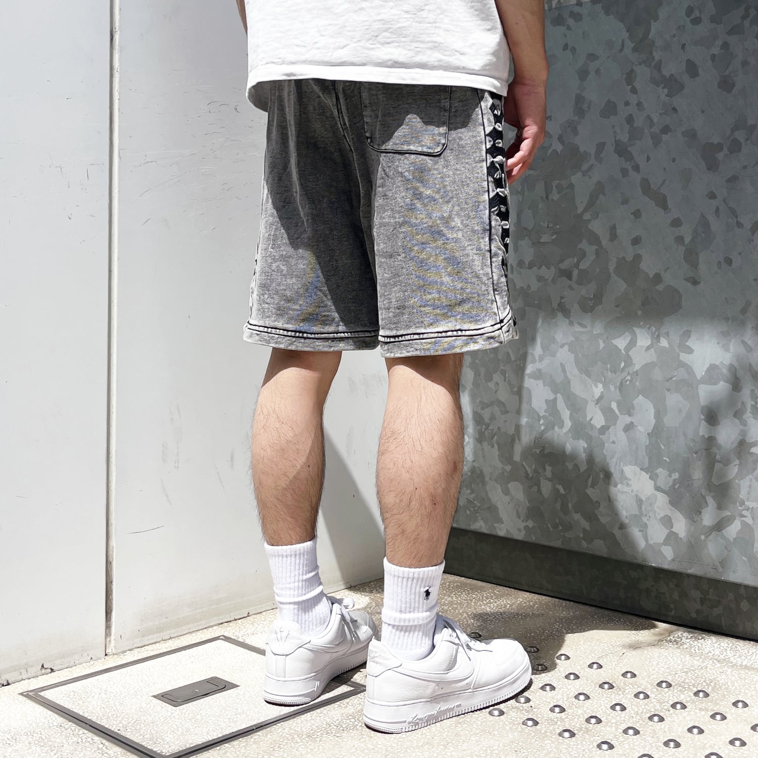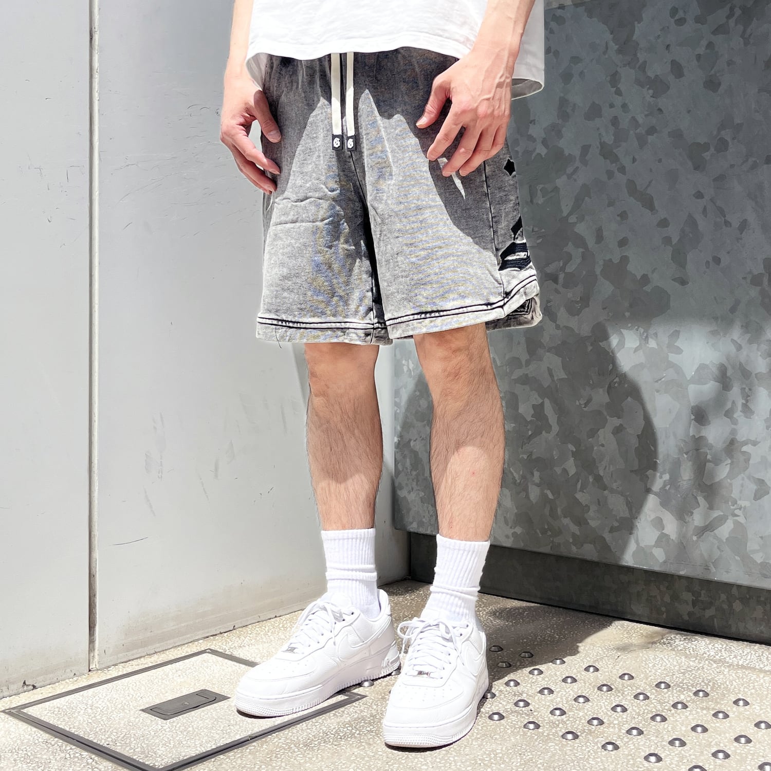 ウォッシュ加工が施されたスウェットショーツ。
