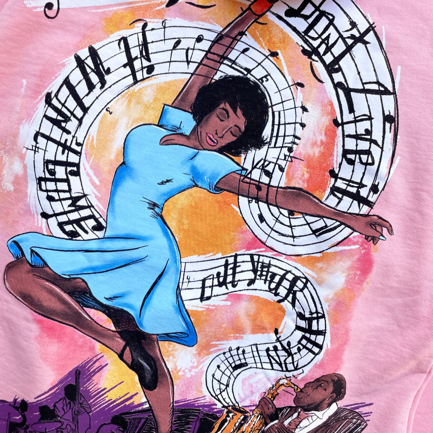 多色使用の特大サイズのグラフィックデザインが、経年劣化を表現した掠れたプリントで落とし込まれております。