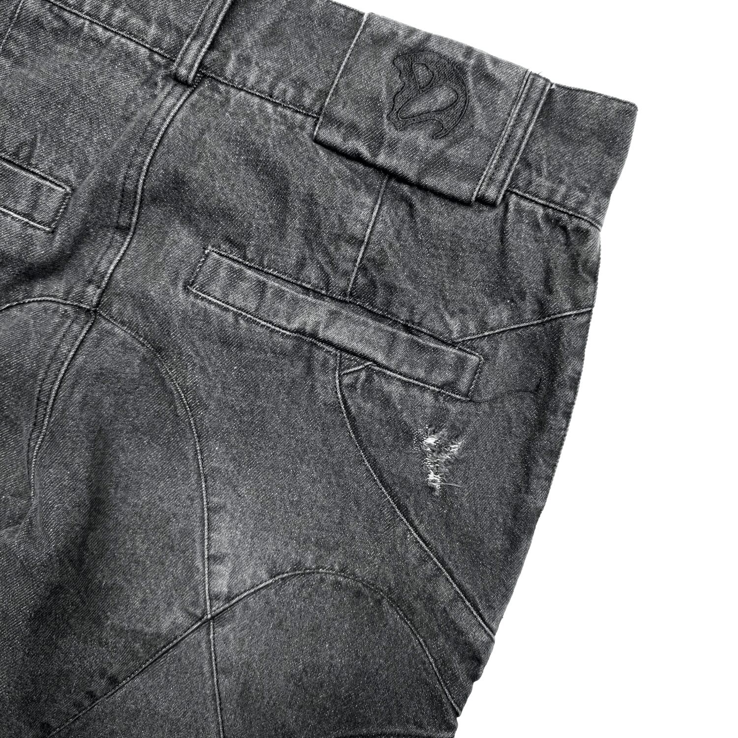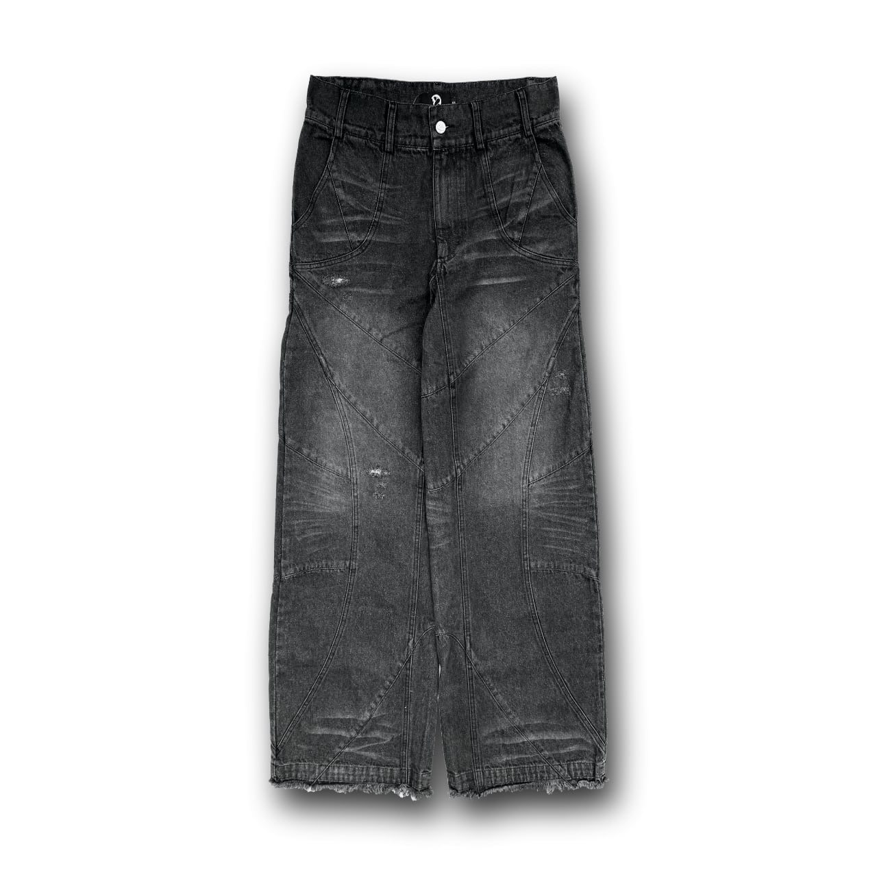 アシッドウォッシュ加工が施されたバギーシルエットのデニムパンツ。