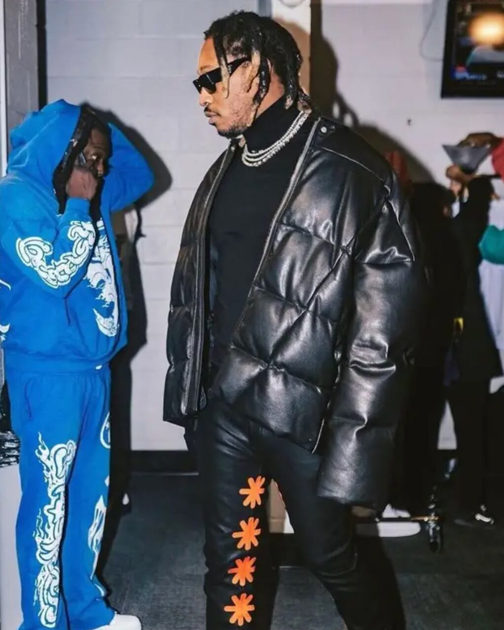 ブランドオリジナルのサンロゴデザインの高級感あるボタンとリベット、バックにはブランドロゴのレザーパッチ。